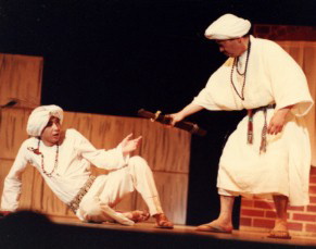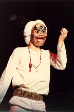 | アヒンサカ | 「まず指が二本、手に入った。節くれ立った老いぼれの指と、ぽって りと白い牝豚の指が・・・・・残るは九十八本。よかろう。醜悪な人間を切って切って切り刻んでやる!人は俺のことを指の首飾りをした男。アングリマーラと呼ぶだろう。おれはおれの道を行くだけだ!」 ーー下手へ走り去る。 |